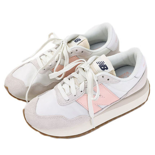 70年代から80年代のランニングシューズのスリムなシルエットを現代風にリファインした「WS237」モデルは、大きめのNロゴが目を惹くスタイリッシュな一足。スポーティながら淡めのピンクがフェミニンな雰囲気をプラスします。