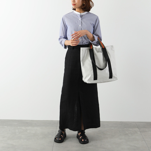 エレガントとベーシックを兼備するエルベシャプリエのスクエアトートバッグ。軽さと耐久性に優れた素材でありながらも、カジュアル過ぎず品のある佇まいが人気の理由。マチの広さは11cmでタブレット類の他、ペットボトルや着替えといった大荷物もこれ1つでまとまります。
