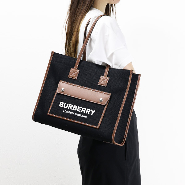 縦26cm×横33cmマチ13cmのバーバリーらしいクラシカルなトートバッグ。ユニセックスデザインのため男女問わず使いやすく、フロントにはマグネットポケットが1つ付いており、まさにスマホやパスケースを収納するための用途でデザインされているそうです。ハンドルドロップも約56cmとコートの上からでも肩にかけやすい実用的な仕様になっています。