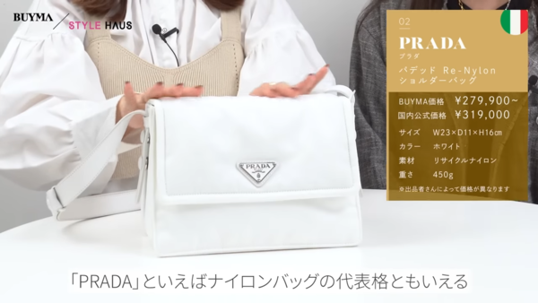 続いてご紹介するのは、PRADA(プラダ)のパデッドRe-nylonショルダーバッグ!プラダの革新的なファブリックであるRe-Nylonを使用したフラップバッグで、洗練された女性らしいシルエットが目を惹きます。