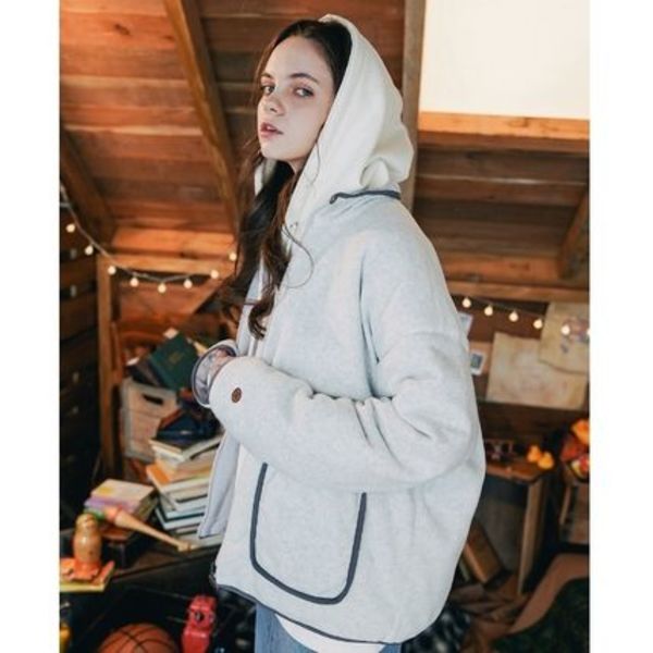 ストリート感のあるアパレルが韓国でも人気を博しているWV PROJECT(ダブリューブイプロジェクト)。大人かわいい雰囲気のフリースジャケットは、リバーシブル仕様で2WAYで使える優れもの。ポケットのパイピングがコーディネート全体に程よいアクセントを加えてくれます。
