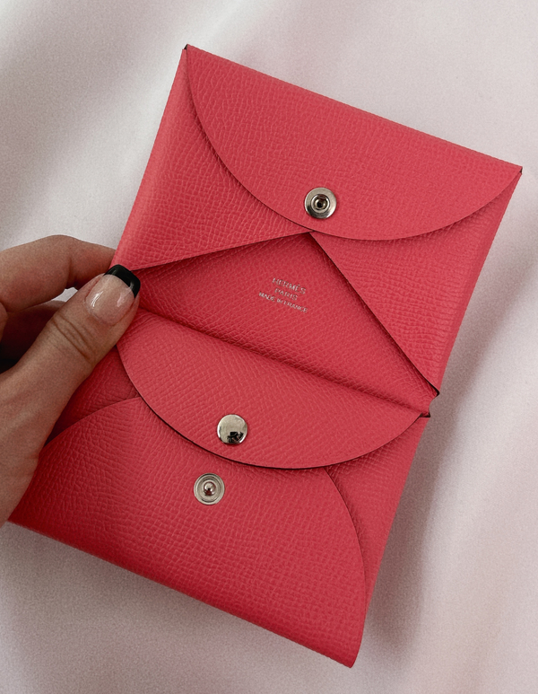 革を巧みに折り畳む方法で作られた「カルヴィ」は、至上最高のフラグメントケースとの呼び声高いHERMES(エルメス)の名品カードケース。プレススタッドを開けるとカードスロットが左右対称に配され、絵のように美しい仏・コルシカの町カルヴィに由来して名付けられました。