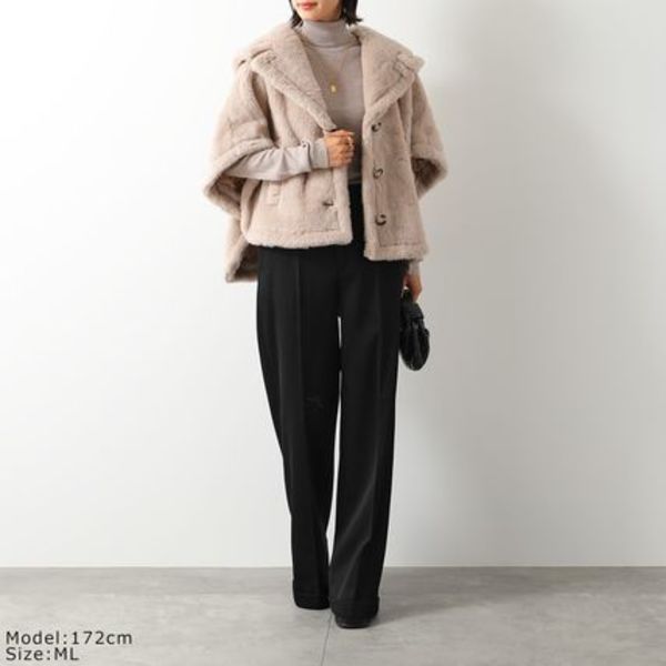 Max Mara(マックスマーラ)のテディベアケープ「CAMBUSA」は、アルパカ、ウール、シルクをブレンドしたファーのような肌触りが魅力。保温性に優れ、ボリューム感がありながら軽量な着心地も特徴で、きれい目なインナーに羽織るだけで大人可愛い印象がお楽しみいただけます。