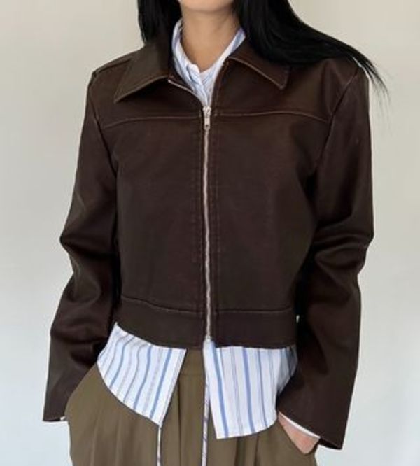 レザージャケットは、韓国ブランドを中心に注目を集めるライトアウターの一つ。ヴィンテージライクでウォッシュド加工が施されたレザージャンパーは、きっちりとしたボックスシルエットできれい目な印象を与えてくれます。