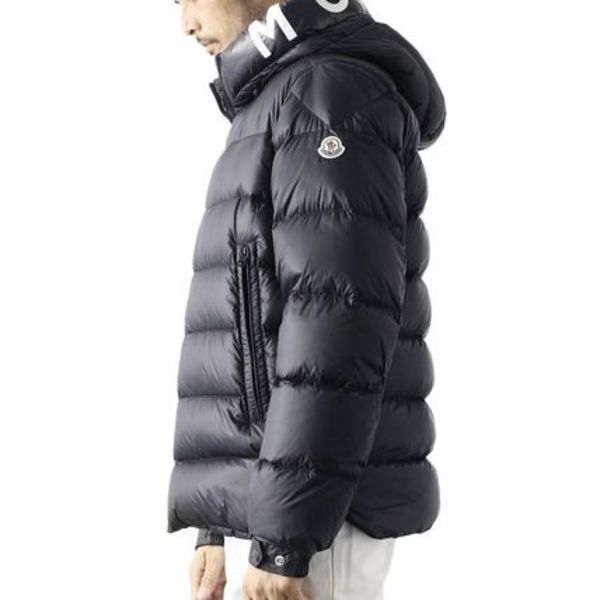 ▼モンクレールのロゴがフード内側にレイアウトされたトレンドっぽい一着。ポイントはロゴが控えめのトーンでプリントされているところで、存在感ありながらも大人な印象となっています。また左袖のブラックロゴもクールです。
