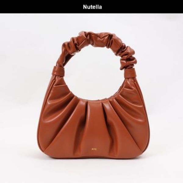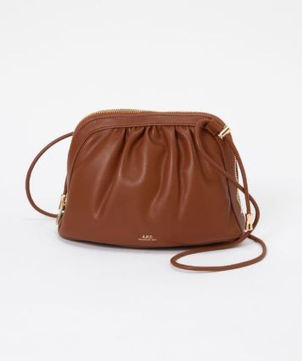 こちらもギャザーの寄ったデザインが特徴的な、「A.P.C(アーペーセー)」のブラウンバッグ。合成皮革なのでお手入れが楽でタフなのが魅力。カジュアルコーデ好きさんにおすすめです。