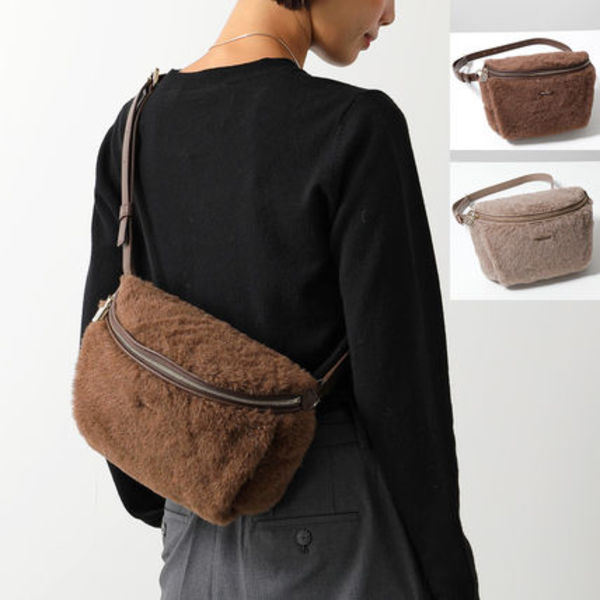 ブラウンの色味はもちろん、素材もモコモコふわふわで秋冬にピッタリの「Max Mara(マックスマーラ)」のバッグ。写真のようにボディバッグとして持つのも良し、ハンドバッグやウエストポーチとしても持てる多機能バッグです。
