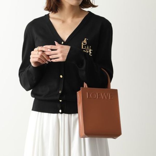 同じくLOEWE(ロエベ)の、タンカラーが可愛いミニトート。シンプルなワンカラーに、型押しされたブランドロゴが目を引きます。どんなコーデにも馴染みやすいミニマムなデザインです。
