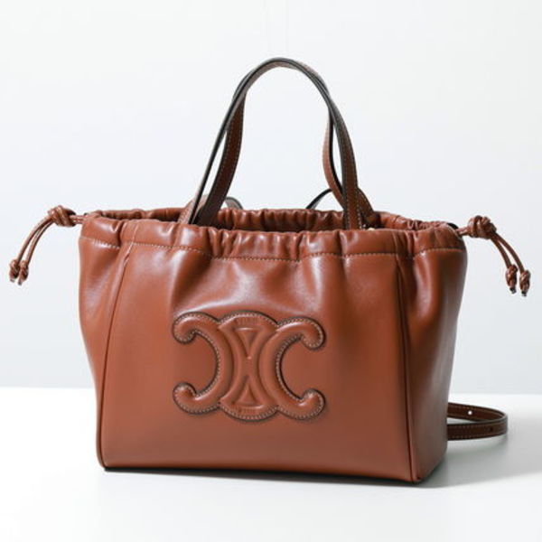 大きくあしらわれたトリオンフロゴがラグジュアリーな「CELINE(セリーヌ)」のバッグ。レザーの上品さと、ドローストリングのカジュアルさを併せ持ったどんなコーデにも合わせやすいバッグです。