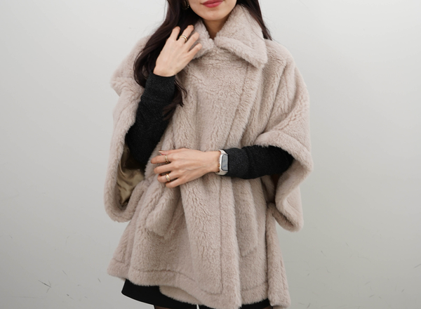 「ALEGGIO」のリッチな光沢のある短い毛並みの生地は保温性に優れ、軽い着心地が魅力♡クラシカルにもフェミニンにも着こなせるケープ型は、今シーズンマストハブ!よりカジュアルで洗練された雰囲気になります。