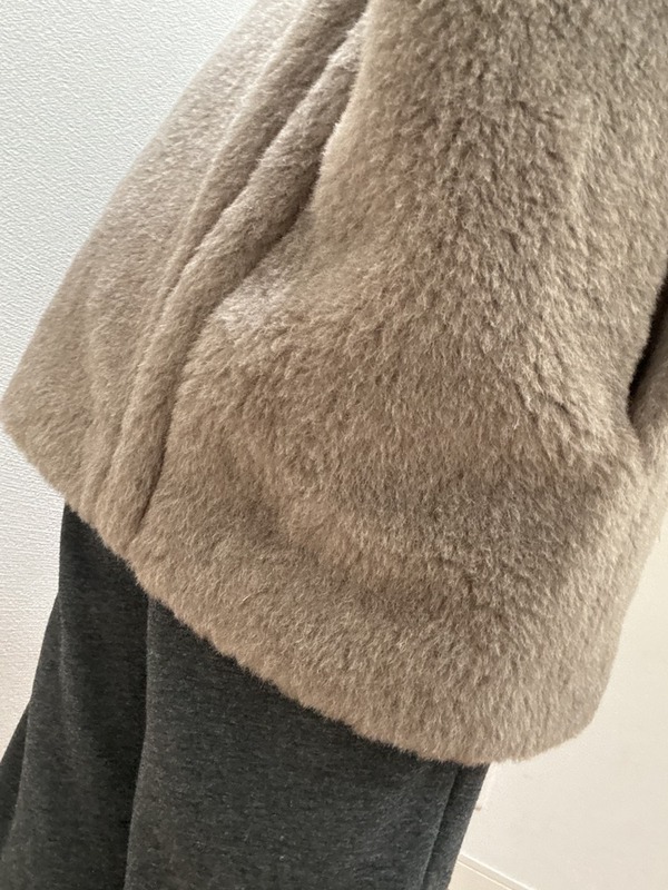 ちなみに、エディター自身マックスマーラのウールのロングコートを愛用中で、着丈はおよそ110cm。身長が163cmで、実際に着るとふくらはぎまで長さはたっぷりとあります。プラットフォームシューズやヒールブーツを履けば全く問題ありませんが、もしテディ素材だったら、160cm以上ある私でも確かに"着られてる"感は否めないかもしれません。