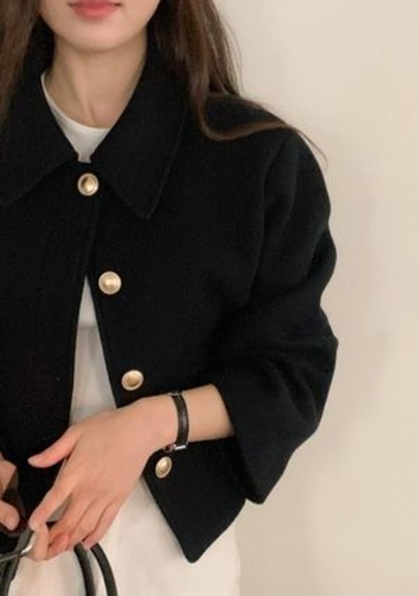 今季、ライトアウターとして注目されているウールのショートコート。薄手のカットソーから厚手のニットまで、インナー次第で長く使えるので、10℃前後の気候にも幅広く使えます。