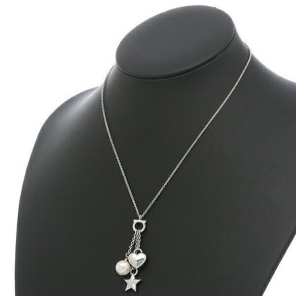 FERRAGAMO(フェラガモ)といえば、メゾンのアイコン「ガンチーニ」モチーフ。そこに、ハートや星、パール風のチャームがゆらめく遊び心のあるネックレスは、すっきりとした細身のチェーンが首元からデコルテを美しく演出。開きのあるVネックのニットやブラウスのワンポイントにおすすめです。