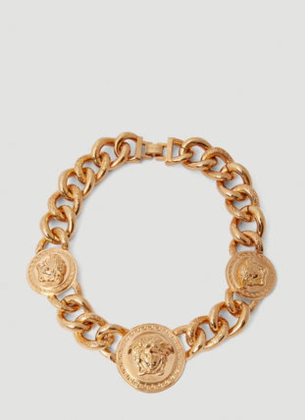 VERSACE(ヴェルサーチェ)を象徴する大胆なメドゥーサのメダリオンが3つあしらわれた太目のチェーンネックレス。ボールドでオンリーワンな煌めきを楽しみたいあなたにぴったりです。