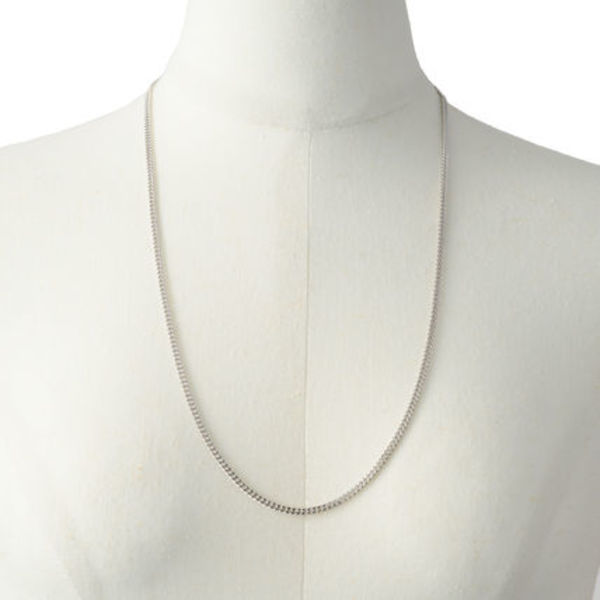 ジャケット、パンツなど大人ハンサムなスタイルや、スウェットなどカジュアルなスタイルにも合わせやすいシルバーネックレスがこちら。