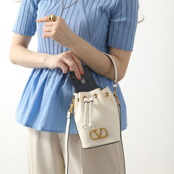 VALENTINO(ヴァレンティノ)は、ガーリーな繊細さや上品さを持つイタリアブランド。Vロゴを施したショルダーバッグは、ドローストリング仕様が今っぽさ◎ゴールドのメタルパーツでラグジュアリーな雰囲気が漂っています。
