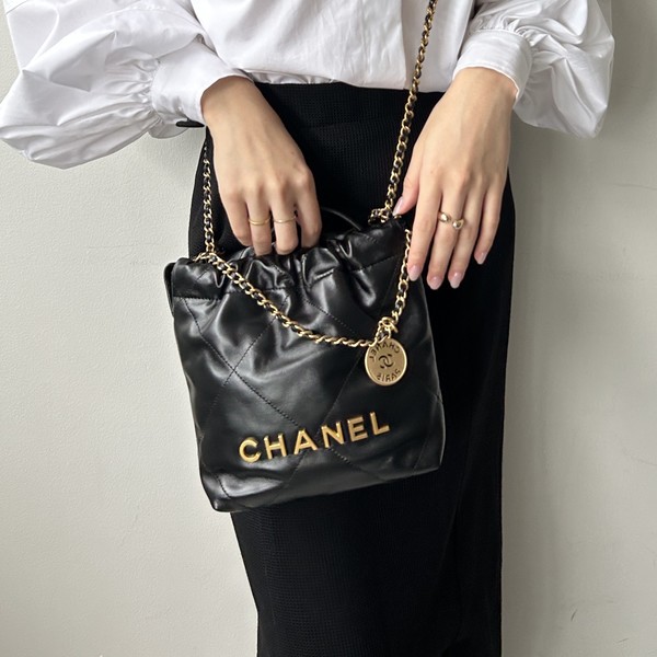 CHANEL(シャネル)といえば「マトラッセ」ですが、よりトレンド感を出したい方は「シャネル22」がおすすめ!巾着型のカジュアルなバッグですが、シャネルらしいキルティングのレザーとチェーンのストラップがラグジュアリー♡大胆なブランドロゴがモードな雰囲気を醸し出しています。