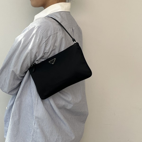 「リナイロン」のショルダーバッグや、レザーバッグなど数々の名品バッグが揃うPRADA(プラダ)。2026年は、コンパクトなミニポーチのようなショルダーバッグに注目!ナイロン素材とトライアングルロゴの組み合わせがスタイリッシュ。スリムな形できちんと感もあり、休日にもオケージョンにも使えそうです。