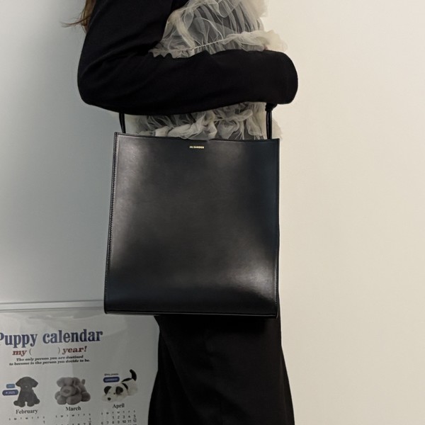 Jil Sander(ジルサンダー)の人気バッグ「タングル」は、シンプルだから大人女子にもおすすめ!ミディアムサイズは、ショルダーバッグながらiPadや500mlペットボトル、ポーチなどもたっぷり収納できます。