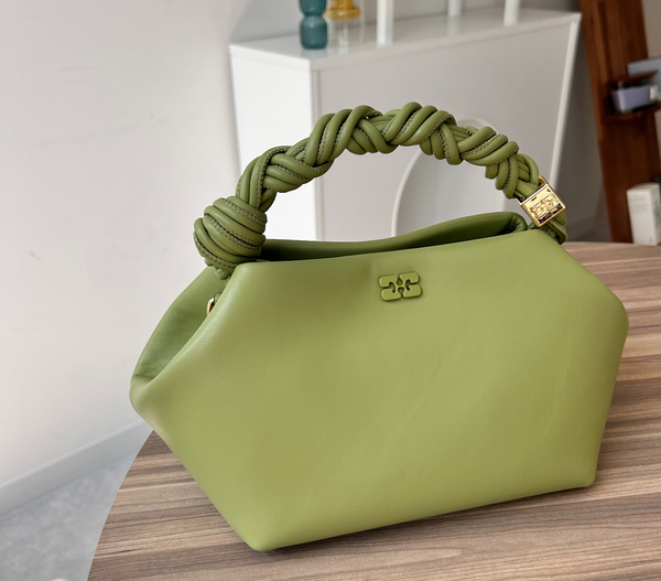 リサイクルレザーを使用した「ボウ バッグ」は、六角形のシルエットが特徴的。調節可能なストラップ付きで、ハンドバッグとしてもショルダーバッグとしても使える嬉しい2WAY仕様。9本の手編みストランドに編み込みノット、さらにバタフライロゴがシンプルな中に個性を加えます。
