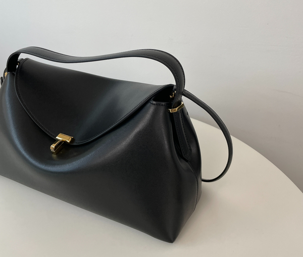 ペブルグレインレザーを使用したショルダーバッグ「T ロック クラッチ」は、海外ファッショニスタの愛用率が高い一点。メタル製のツイストロックをひねると、内側メインコパーメントにカードポケットが一つ。ショルダーストラップを取り外してクラッチとしても使えるので、スタイルに合わせて持ち変えることができます。