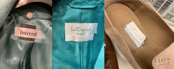 Intrend(イントレンド)にあるアイテムは、すべてアウトレット価格での販売になるため、ブランドネームをはずして、代わりに「INTREND」のタグやシールが取り付けられています。