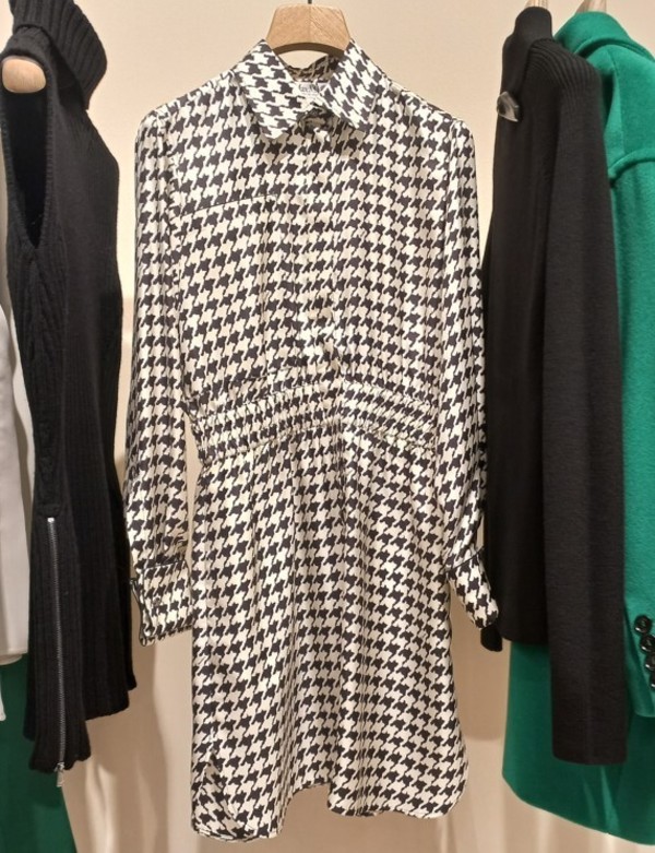 ∟千鳥格子プリントが上品なMax Mara(エスマックスマーラ)のシルクシャツドレスはワードローブに追加したい一枚。100%シルク素材でリラクシーな着心地を叶えてくれます。
