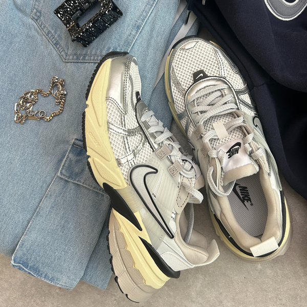 ∟2024年から引き続きトレンドの“Y2Kファッション”とも相性抜群な1足。メタリックの配色が美しいNike(ナイキ)のV2K RUN。レトロ×近未来的なムードがMIXした一足で、いま欲しいシルバースニーカーの筆頭株と言えるでしょう!重さは約480g