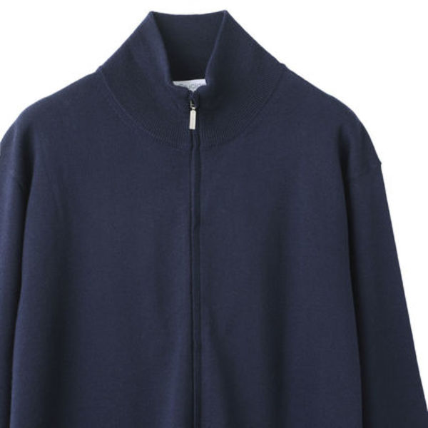 ジョンスメドレーのこのジップニットでは「メリノウール50%、エコカシミア50%」の配合に。ニット単体でも抜群の暖かさに加え、肌触りもなめらかで上質。また蒼白系メッキの金具もヨーロッパ仕様で高級感を感じさせます。