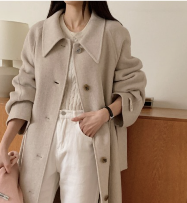 ロマンチックな雰囲気でコーデの幅が広がるハンドメイドウールコート。インパクトのある襟元ときれい目なストレートシルエットが特徴で、フォーマルからデイリー、お仕事シーンまで幅広く着用可能です。