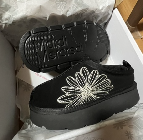 韓国発の人気ブランド・Mardi Mercredi(マルディメクルディ)。アイコンモチーフのフラワーロゴがアッパーに刺繍され、ポップなアクセントを加えます。アッパーには牛革が使用され、お手頃ながら素材使いは本格的。ボリューミーな4cmソールでスタイルアップを叶えます。