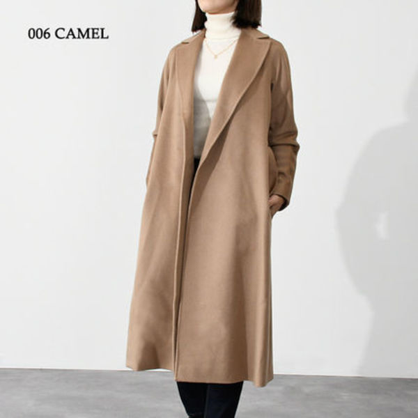 共布ベルト付きのローブ型コート「PRATER」は、すっきりきれい目なストレートフィットでハンサム派にもおすすめ。ロープは閉めずにストンと着ても素敵。ステッチが効いており、エレガントさの中にエッジを加えます。100%バージンウール仕様で軽い着心地と暖かさもバッチリです。