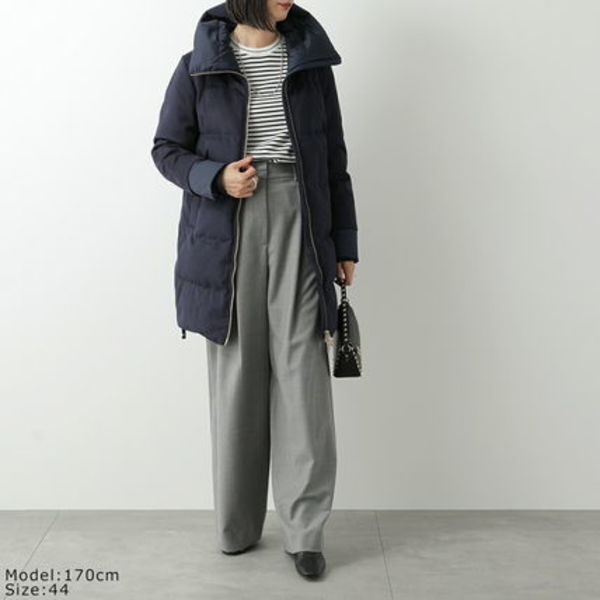エレガントで都会的な雰囲気を醸し出すHERNO(ヘルノ)のダウンコートは、上部に高級感のあるメルトンウール、下部には超軽量ナイロン素材を採用した異素材コンビのお洒落な一着。ダブルジップに加えて着膨れしない工夫がなされ、Aラインで女性らしさもたっぷりな極上の逸品です。