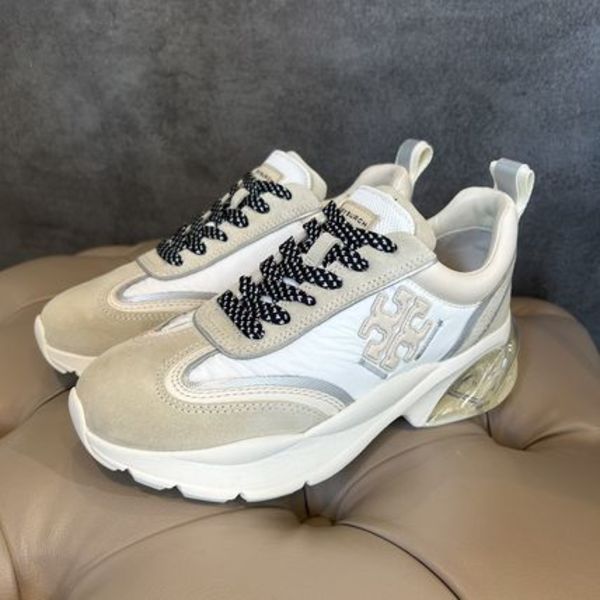幸運のシンボルであるウィッシュボーンを象ったパーツをソールに埋め込んだTory Burch(トリーバーチ)の厚底スニーカー「Good Luck Trainer」。アイボリーやクリーム系のフェミニンカラーを基調に、アッパーにはメゾンのロゴもしっかりとあしらわれています。