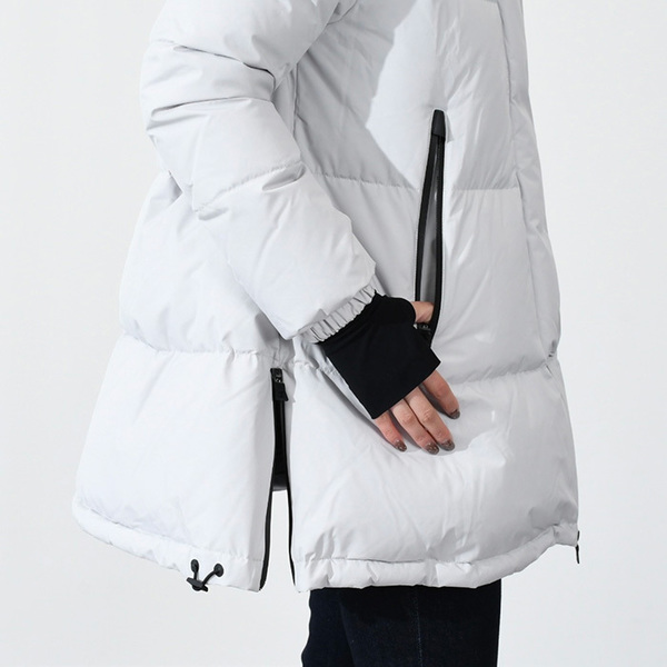 ロング丈はクールな着こなしが出来ておしゃれ上級者向け。ベルトでウエストマークすることで脚長効果も期待できるロングダウンは高身長の方におすすめです。