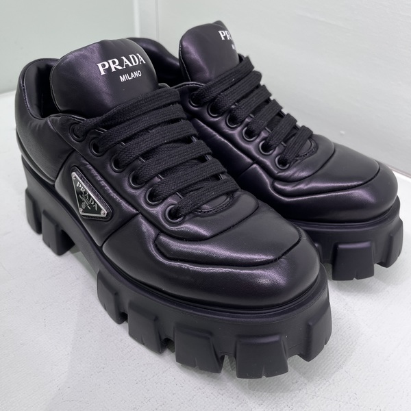 プラダのスニーカーは、アッパー(甲の部分)はシンプルめで、ソール(底)がインパクティヴのものが人気。