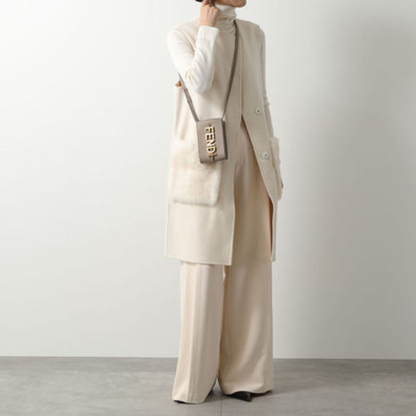エレガントな"FENDI"ロゴが施されたフォンポーチは、上質なスムースレザーが使用され、斜めがけするとコーディネートの華やかなアクセントに。メインコンパートメントにはカード入れが一つ備え付けられ薄型のフラグメントケースも収納可能です。