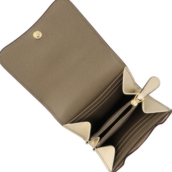 コンパクトな二つ折りタイプ。ロゴマークは同系色でさりげなく施されています。すっきりとシンプルなユニセックスデザインです。