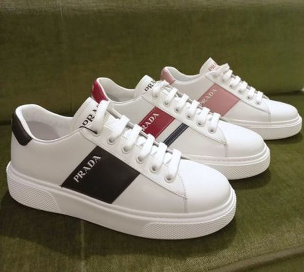 「PRADA(プラダ)」のスニーカーは、自慢のレザー素材を使用したきれいめなデザインが豊富♡ホワイトに配色を施したこちらのレザースニーカーは、ブランドロゴが刺繍され高級感も忘れません。