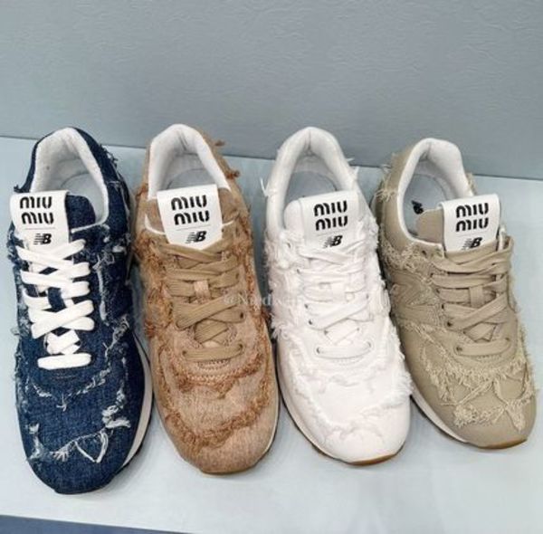フェミニンな「MiuMiu(ミュウミュウ)」とスポーツブランド「New Balance(ニューバランス)」のコラボスニーカー♡ほつれ加工を施したデニムのようなダメージ感がヴィンテージライクです。カジュアルだけれどエッジの効いた一癖あるスニーカーでおしゃれ見え間違いなし!