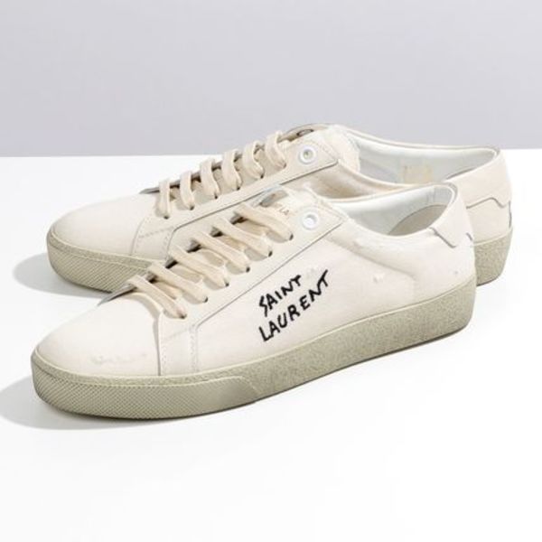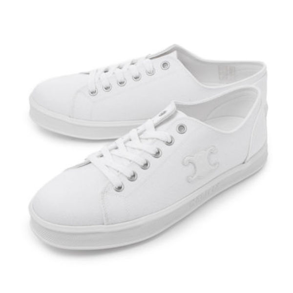 ハイブランドで今人気のキャンバススニーカーが「CELINE(セリーヌ)」。真っ白なシンプルなデザインにトリオンフモチーフがあしらわれ、上品な足元を演出できます。デニム×Tシャツのシンプルコーデも大人女子らしく垢抜けること間違いなし!!