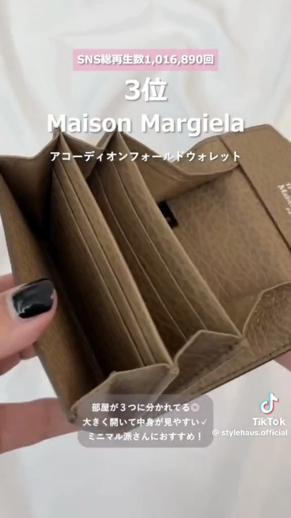 第3位にランクインしたのはMaison Margiela(メゾンマルジェラ)のアコーディオンフォールドウォレット。総再生回数は約101万回