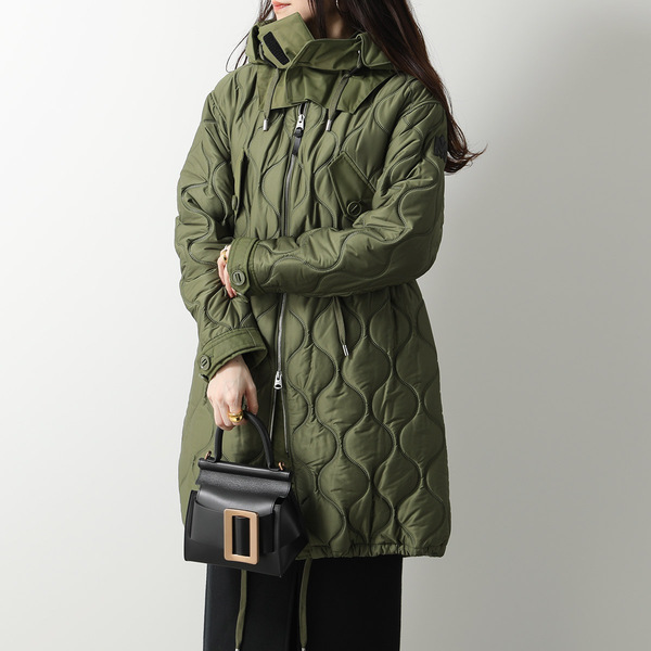 上品な光沢感が魅力のキルティング素材のロング丈中綿コート。ミリタリー感のあるカーキーカラーの他、上品なホワイト、ベーシックな黒とテイストによって選べるカラー展開が魅力。ウエスト部分のドローコードでシルエットを変化でき、きれいめなムードにもハマるアイテムです◎