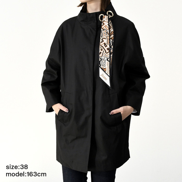 メンズライクなオーバーサイズジャケットは撥水加工を施した機能派アウター。襟元のシルク素材のスカーフはシンプルなデザインにエレガントさをプラス!ドロップショルダーで身体のラインも出にくく、ざっくり羽織ってサマになるシルエットが魅力。