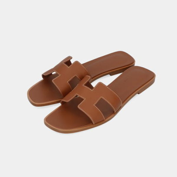 お洒落さん御用達の『オラン』や『シプレ』は、フラットなのに高級感を忘れないエルメスの定番サンダル。上質なレザーを使用していて、ブランドロゴになったバックルがポイントに。