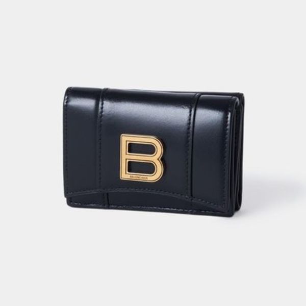 ツヤのあるカーフスキンを使用した「BALENCIAGA(バレンシアガ)」の『アワーグラス』財布。ちょうどいいサイズ感でバッグを選ばず、カードスロットも3つ付いていて収納力もあります。フロントの大きなメタルロゴがスタイリッシュ!