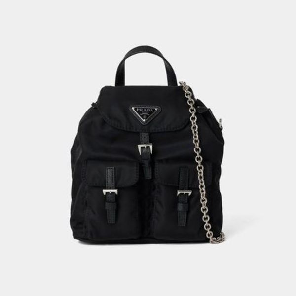 最後はPRADA(プラダ)の変わり種、「リナイロン」シリーズのマルチポケットバッグをご紹介。外側のフラップポケットとフラップベルトがカジュアルなアクセントになっており、トライアングルロゴとチェーンショルダーが高級感を添えます。