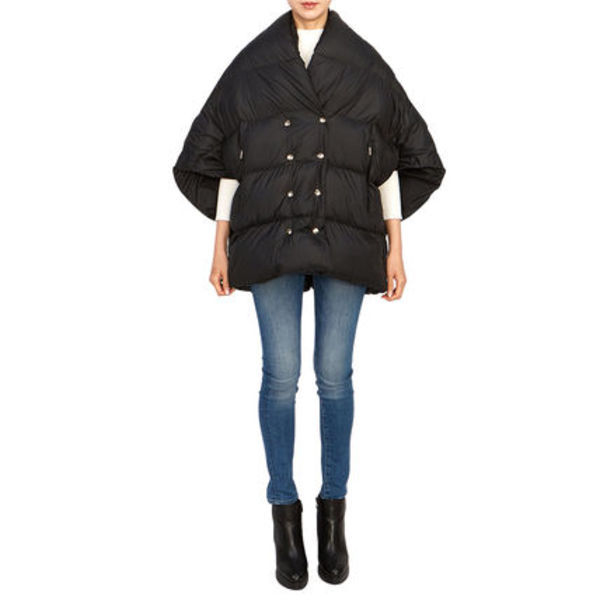 まだまだ寒い日も、変形シルエットのダウンコートなら、軽やかかつフレッシュなイメージに。サイドのボタンを外して、ケープ風にしてもまた違った印象の着こなしを楽しめそう。