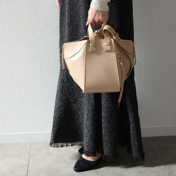 「ハンモック」は、多機能性を重視したフォルムが特徴的なデイバッグとして、数あるLOEWE(ロエベ)のバッグの中でも高い人気を誇るシリーズ。その革新的なデザインにより、大きさに変化をつけたり2WAYで持てたりと、幾通りにも楽しむことができます。