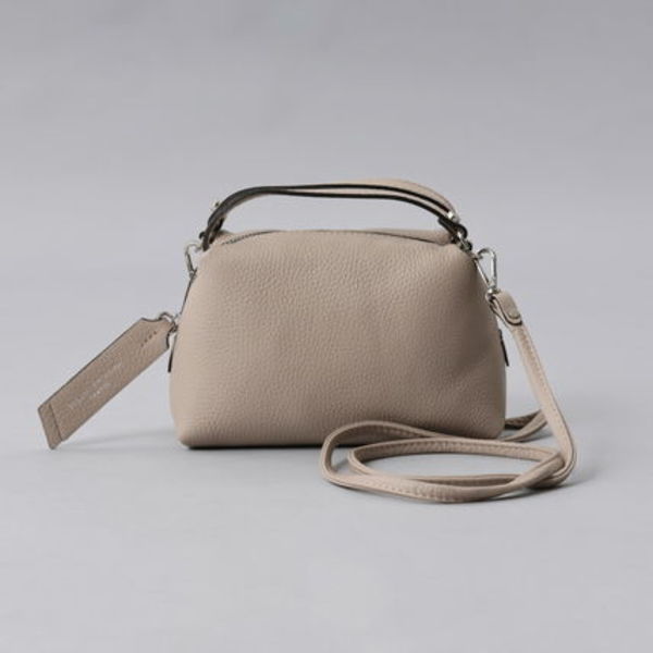 シボが美しい上質なレザーを使用したJ & M Davidson(ジェイアンドエムデヴィッドソン)の正統派クラシカルボストンバッグ「ミア」。温かみのあるトープカラーで、落ち着いた装いとも抜群にマッチします。